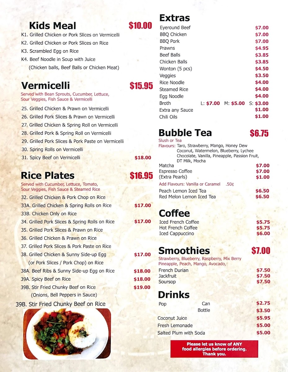 DT Pho & Coffee Vietnamese Noodle House Menu